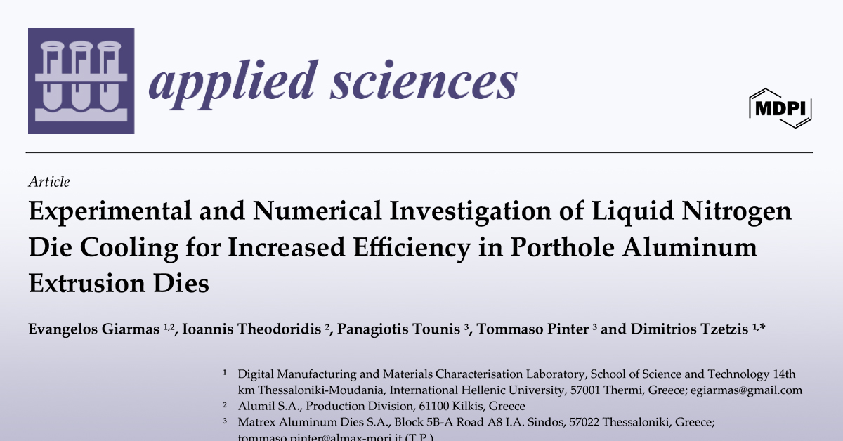 Die design plays a critical role in achieving high-quality aluminum extrusion products with optimal efficiency. Porthole dies are widely employed to produce hollow profiles for diverse industrial applications, yet their design parameters significantly influence surface quality, geometry, and productivity. In this study, a two-hole porthole die was investigated using both numerical and experimental approaches. The 6060 aluminum alloy (produced in the foundry of Alumil SA, Kilkis, Greece) was selected as the material of focus. Finite Element Analysis was conducted with HyperXtrudeâ„¢ 2022 software, while experimental trials were performed on a 35 MN extrusion press. To further enhance productivity, a liquid nitrogen cooling system was integrated into the process. The combined numerical and experimental results demonstrated that the redesigned die and the integration of liquid nitrogen cooling significantly improved process performance. Productivity increased by 8.76%, with ram speed rising from 6.8 mm/s to 9.5 mm/s while maintaining dimensional accuracy and stable extrusion conditions.